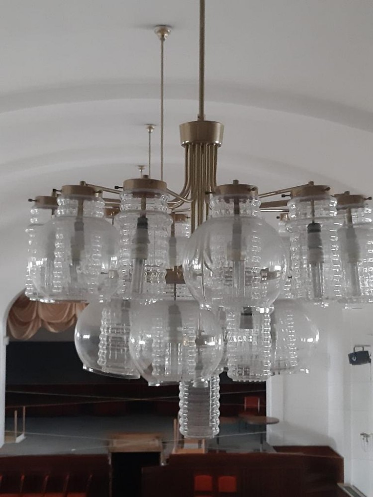 Mid century modern Monumental Brass & Smoked Glass Chandelier by Gino Paroldo, Italy, 1970s, Late-20th century, in good condition, for sale in Lighting, Chandeliers | Davidowski